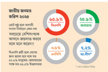 প্রথম আলোর উদ্যোগে করা এক জরিপে মানুষের এই মতামত উঠে এসেছে। জরিপটি করানো হয়েছে কিমেকারস কনসাল্টিং লিমিটেডকে দিয়ে। জরিপের শিরোনাম ‘গুরুত্বপূর্ণ সামাজিক-রাজনৈতিক বিষয়ে জাতীয় জনমত জরিপ ২০২৫’।